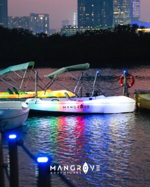 There is nothing more exciting and chilling than sailing through the calm water of Reem Central Park on an electric white boat. With a capacity of 2 adults and 1 child, you can enjoy and rent the water activity for 30 to 60 minutes. The electric boat is powered at 3 knots speed while exploring the true nature of the mangroves.